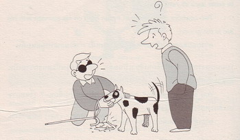 A blind man was standing on the corner with his dog when the dog raised his leg and wet on the man's trouser leg. The man reached in his pocket and took out a doggie biscuit. A busy body who had been watching ran up to him and said, "You shouldn't do that. He'll never learn anything if you reward him when he does something like that!". The blind man retorted, "I'm not rewarding him. I'm just trying to find his mouth so that I can kick him in the ass".